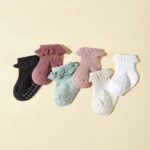 These baby girl lace socks are cute enough to dress up or wear with a regular outfit. The lace is very sweet and beautiful. These baby socks are very soft and breathable. Natural fibers provide a good stretch. Comfortable elastic cuffs at the ankles and prevent the socks from falling out.
