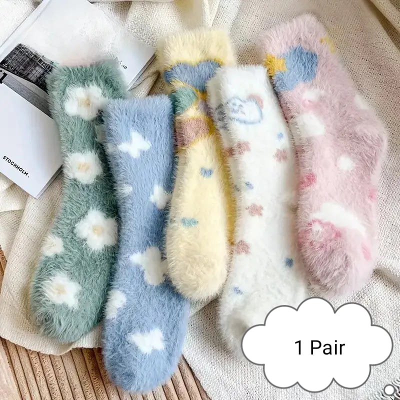 Women Cartoon Cloud Fleece Socks