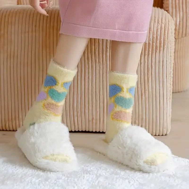 4. Warmth: The socks are described as being thick plush and soft fuzzy, providing an extra layer of insulation. This ensures that they are cozy and warm, ideal for chilly days.